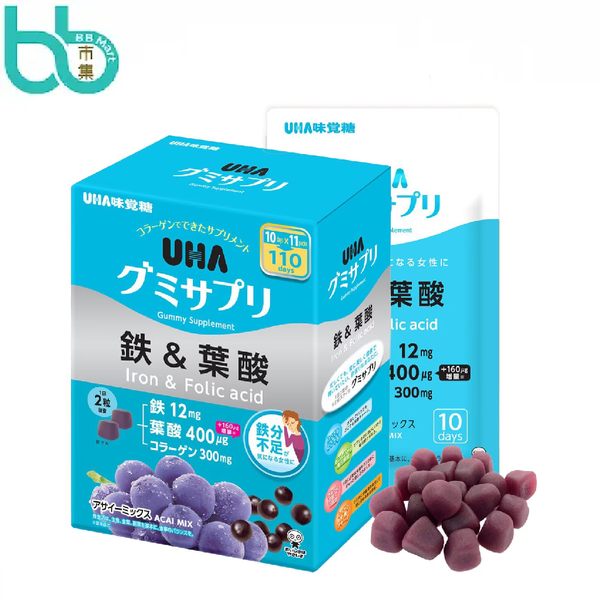 UHA 味覺糖 - 鐵和葉酸 營養補充軟糖盒裝220粒 (20粒裝 x 11包裝) [平行進口]