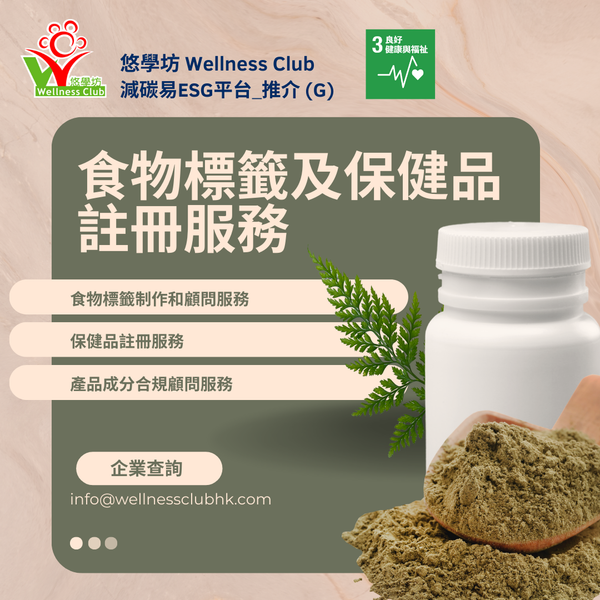 (敬請預約)【悠學坊_減碳易ESG平台推介】食物標籤及保健品註冊服務