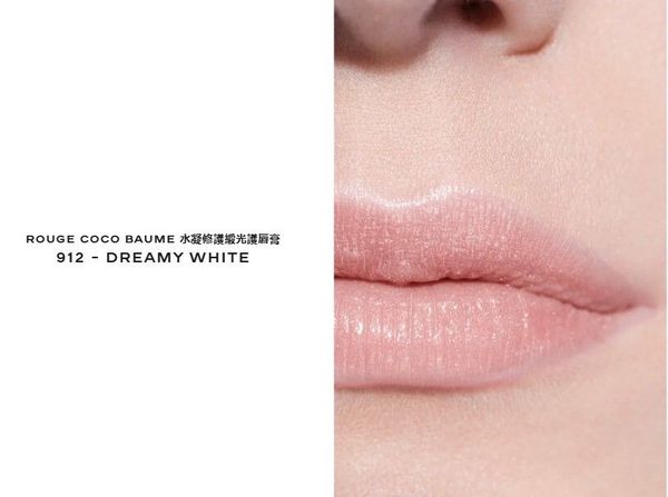 Chanel-香奈兒ROUGE COCO BAUME水凝修護緞光護唇膏/白管口紅912#DREAMY WHITE[3145891719123][平行進口]