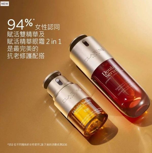 Clarins從表觀遺傳學汲取靈感,獨創EPI抗老逆時科技,強效擊退生活習慣造成的表觀老化現象。 賦活雙精華配方加入法國巨型蘆葦萃取,有助強化肌膚對環境的抵禦能力,從而延緩老化痕跡。