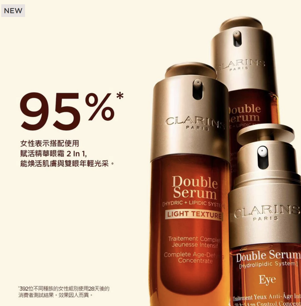 Clarins從表觀遺傳學汲取靈感,獨創EPI抗老逆時科技,擊退表觀老化,賦活細胞自癒力推出新一代輕盈版賦活雙精華,同時採用適合混合性至油性肌膚而設計的全新升級雙效配方。