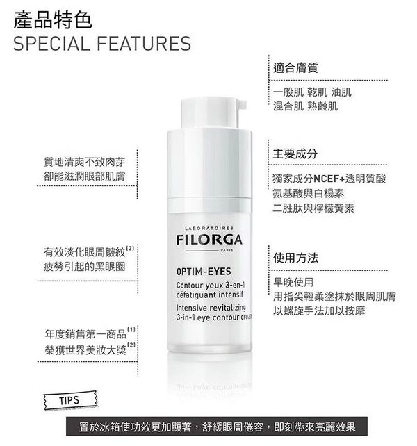 短短幾年間,OPTIM-EYES 眼霜已成為菲洛嘉 (FILORGA) 的暢銷產品之一:它有效淡化疲勞跡象,讓您在清晨醒來時,即可擁有更清新、更年輕的雙眸。