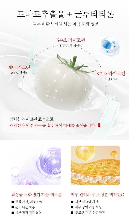 番茄萃取物+穀胱甘肽具有美白功效的成分,提亮膚色