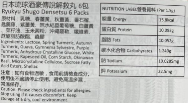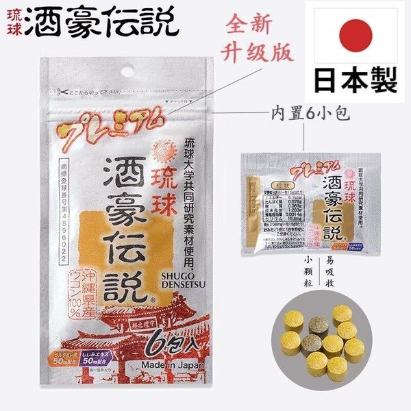 琉球酒豪伝說-日本琉球-酒豪伝說/酒豪傳說 升級版 薑黃錠解酒丸1袋[6包入][4963675326454][平行進口]