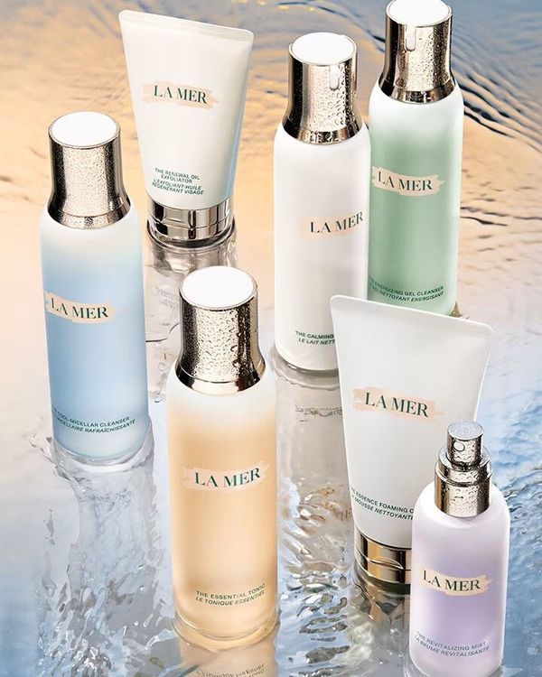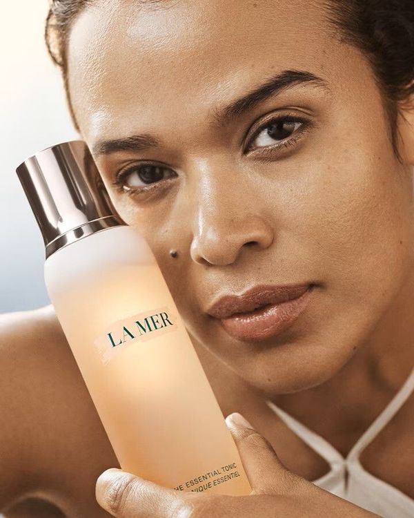 潔面後,將醒膚水沾滿化妝棉抹於臉頸位置,再進行你的La Mer護膚步驟。