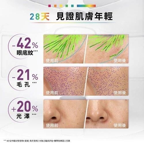 **48 位中國女性使用4 星期, 每天使用2 次後之臨床評估。實際效果因人而異