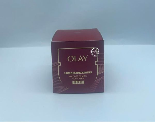 - OLAY專研專櫃級成分Peptide胜肽50年,紅金面霜-加入首創塗抹式「類肉毒肽"」重磅成分﹐Signal Peptide訊號肽組合`突破性激活3大抗老蛋白^,令法令紋減淡、蘋果肌更豐盈、下顎線更清晰。