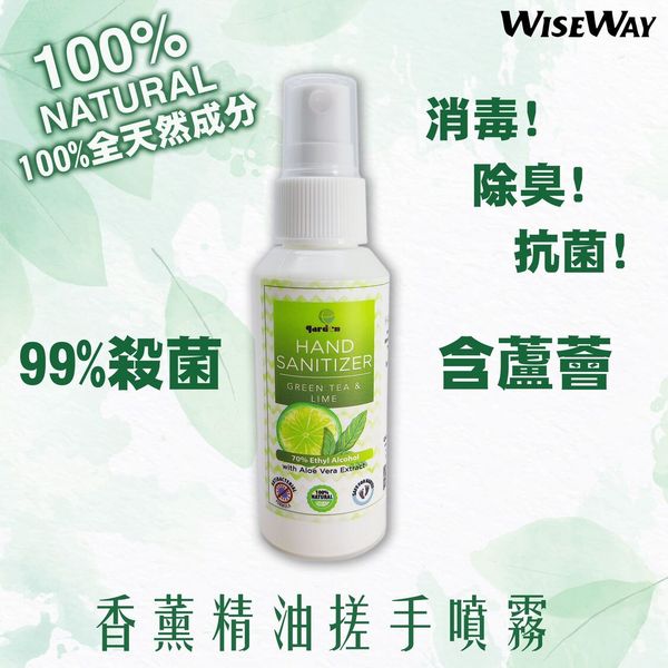 獨家消毒除臭抗菌配方:含70%酒精成分,加入蘆薈萃取物再配上100%純天然綠茶,青檸,甜橙,檸檬,薫衣草,洋金菊精油製造,消毒抗菌同時保護雙手免受刺激,用後不乾燥.