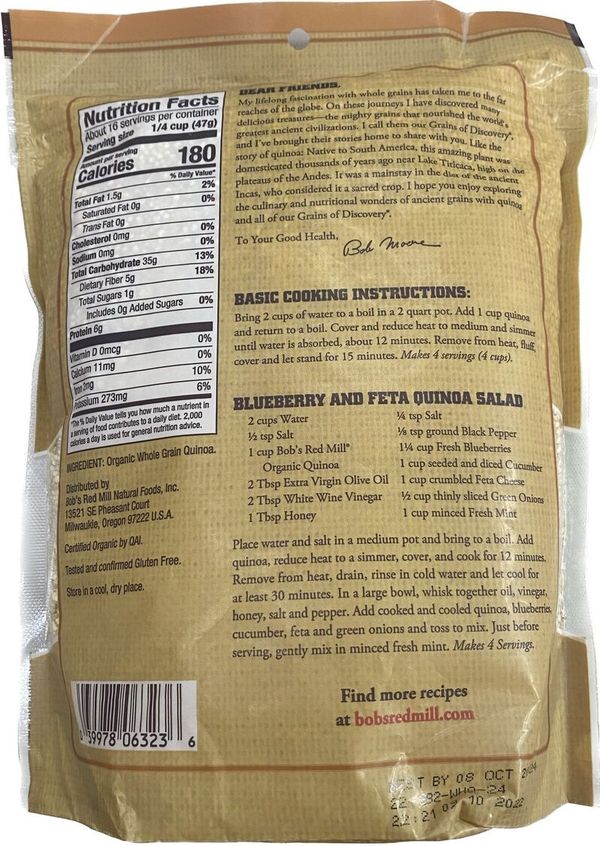 Bob's Red Mill Regular Organic White Quinoa Parallel import 737g 有機白藜麥 平行進口