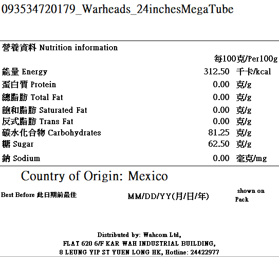 WARHEADS-激酸水果硬糖 24寸高超大筒巨型版分享裝 (平行進口) Extreme Sour Hard Candy Super Tube 24" Tall