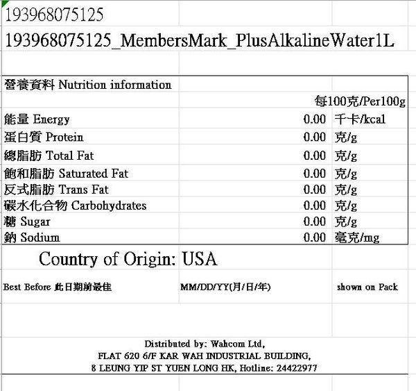 Member's Mark 1L Member's Mark Plus+ Alkaline Water 9.5+pH level Parallel import 1L Plus+ 鹼性水 9.5+