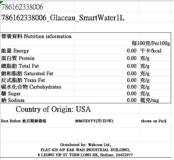GLACÉAU smartwater 1L Glaceau SmartWater Vapor Distilled Premium Water Parallel import 1L SmartWate