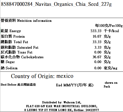 NAVITAS ORGANICS 227g Organic Chia Seed (Parallel Import) 227g 有機奇亞籽 (平行進口) 858847000284