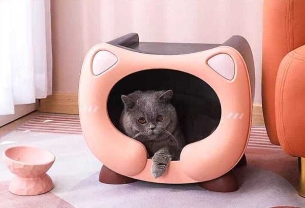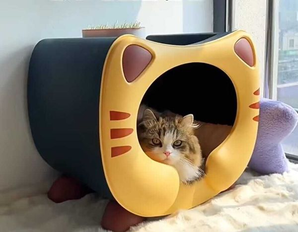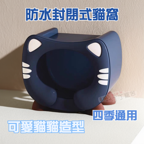 For Cat-(四季通用) 可愛貓造型 防水封閉式寵物窩 (藍色)