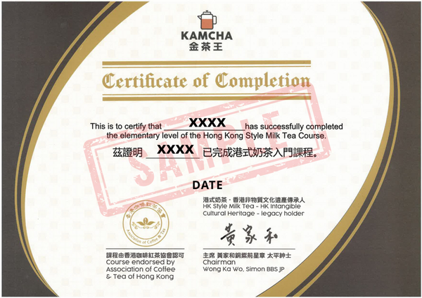 *課程結束後,可獲得由「香港咖啡紅茶協會」認可的課程證書。