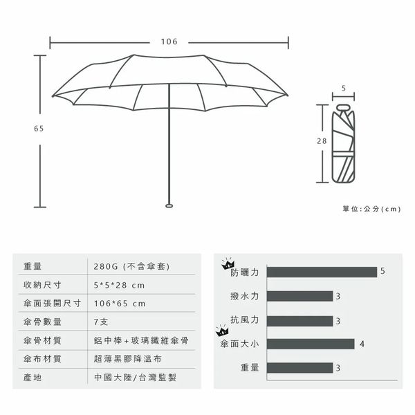 2025 新開發.黑科技 解決傘布發黏、脫膠問題 25吋中型傘面 一個人好寬敞,兩個人不擁擠 超薄黑膠降溫布 多道塗層,科技降溫,有效防曬,降溫有感 7骨結構傘骨+玻璃纖維 7骨造就輕量卻不失堅固耐用,不用怕開花 手動傘 安全開關,開收傘不夾手