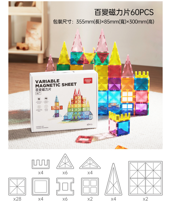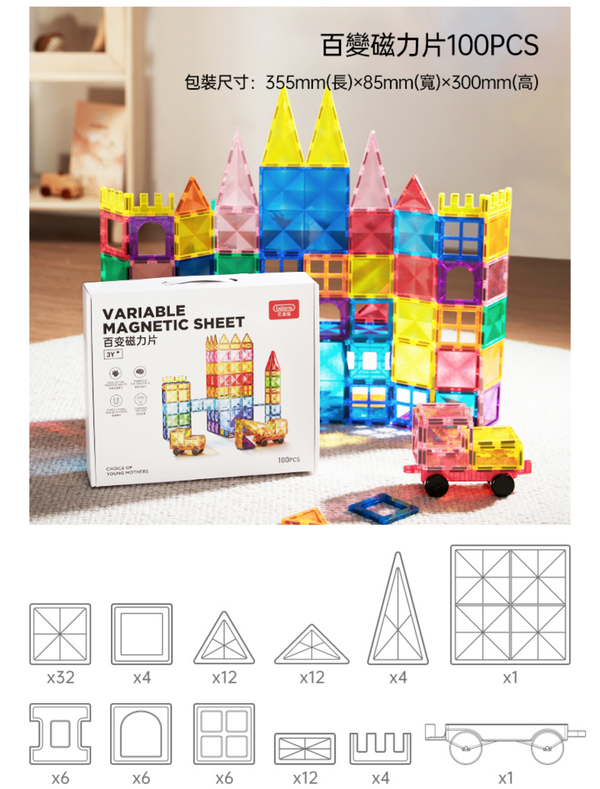 童樂高飛-Beiens兒童磁力片吸磁鐵拼砌積木磁力貼拼圖益智玩具(120PCS)