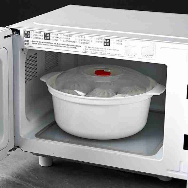 雙耳圓形蒸籠微波爐餐盒家用塑膠加熱保鮮盒帶蓋蒸包子方便麵碗