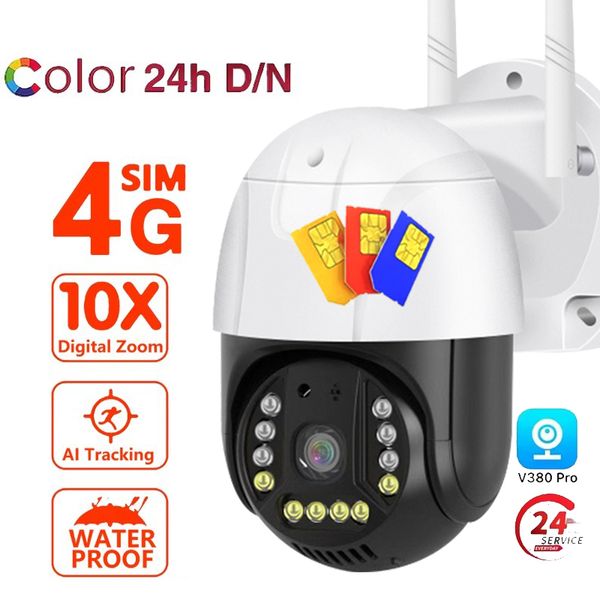4G SIM 卡攝影機安全 IP 無線閉路電視監視器戶外防水自動