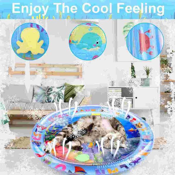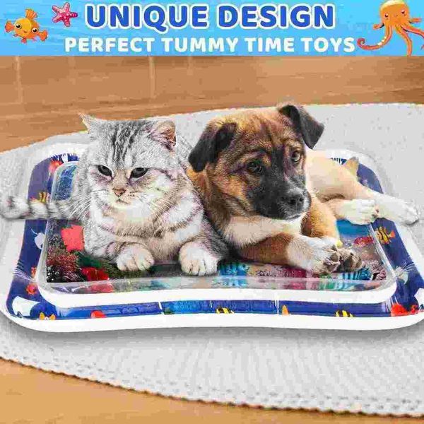 水上感官遊戲墊加厚充氣水墊適用於貓狗寵物遊戲墊與魚海洋主題感官玩具水