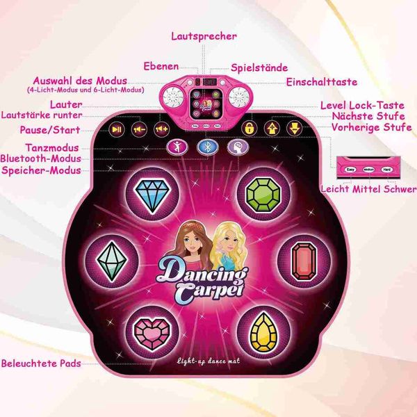 TERRAMUS 舞蹈墊發光跳舞毯玩具帶藍牙/27 級/記憶挑戰/LED/玩俱生日禮物適合 3 歲以上女孩
