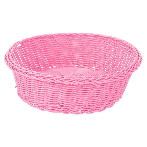 粉紅柳條麵包籃編織水果收納籃食品容器點心托盤