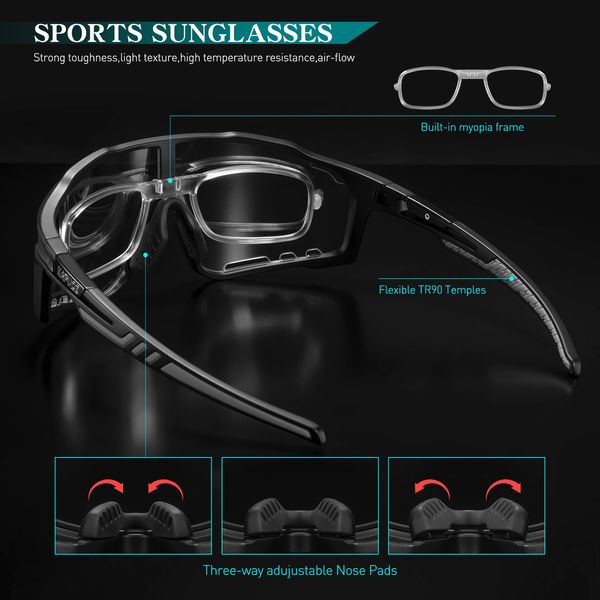 Kapvoe變色騎乘眼鏡騎乘太陽眼鏡UV400內建近視鏡框戶外自行車眼鏡運動自行車風鏡