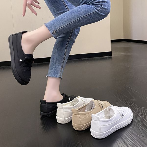 女士鞋舒適女士休閒平底白色繫帶鞋夏季硫化運動鞋女士輕便柔軟淺口樂福鞋
