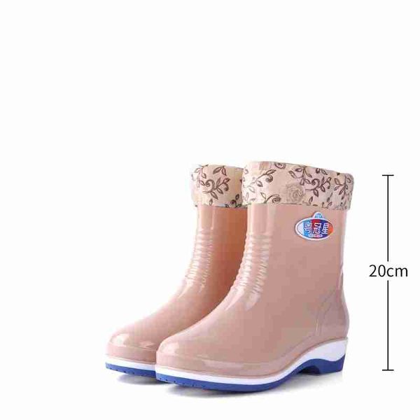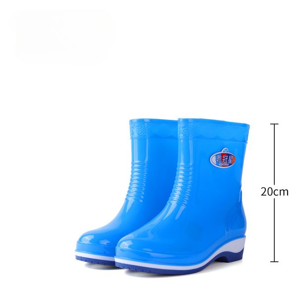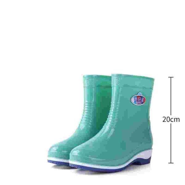 2025全新圓頭PVC廚房管成人女式雨鞋防滑防水厚底女用長筒雨靴