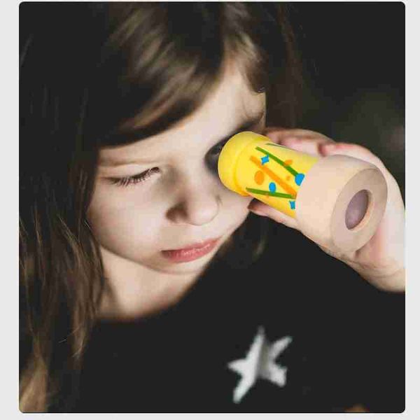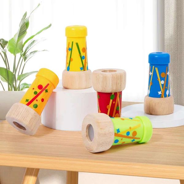 兒童趣味旋轉木質萬花筒拼圖早期教多邊形鏡子蜂眼魔法萬花筒小玩意兒童