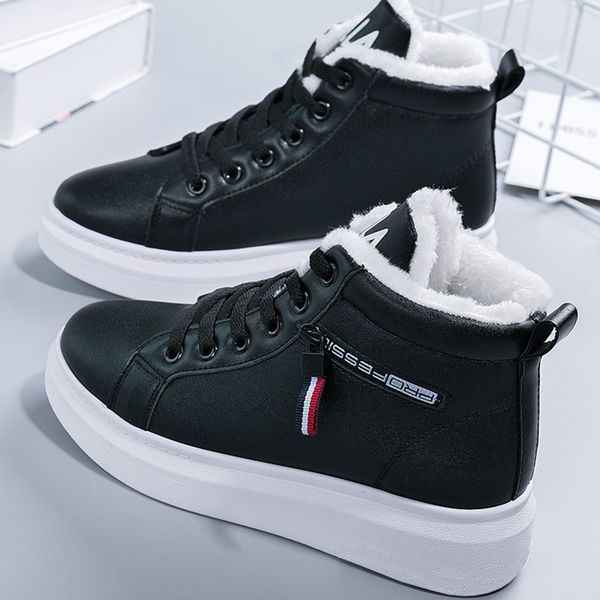 2025 冬季靴子女士踝靴保暖 PU 毛絨冬季女鞋運動鞋平底繫帶女士鞋女士短款雪靴