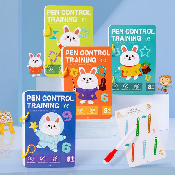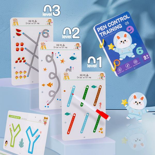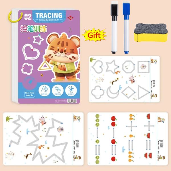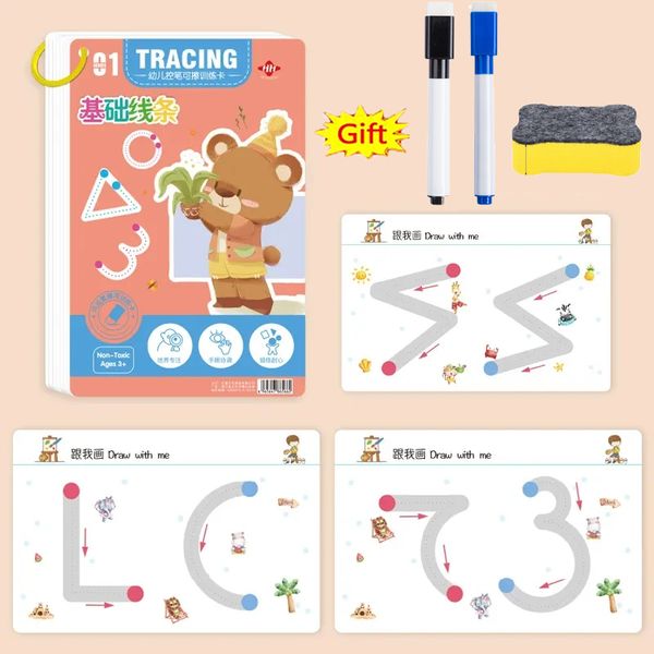 神奇描摹練習冊兒童蒙特梭利繪畫書教育可重複使用的魔法練習字帖筆控訓練書