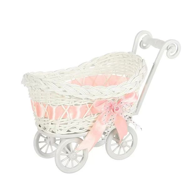籃子嬰兒車嬰兒車編織裝飾迷你可愛糖果柳條收納服務玩具水果