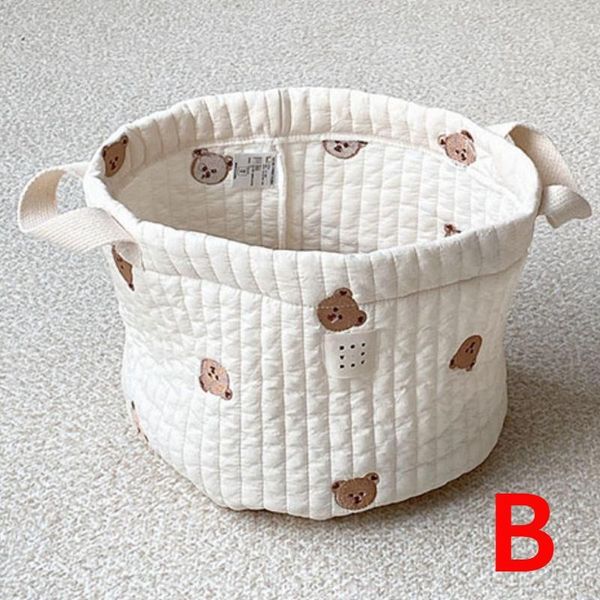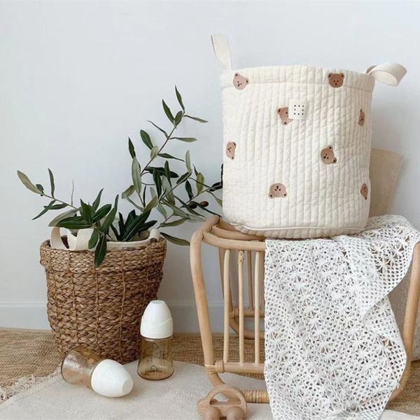 可愛熊刺繡尿布袋尿布收納袋棉質媽咪包新生兒兒童收納袋洗衣籃衣服玩具