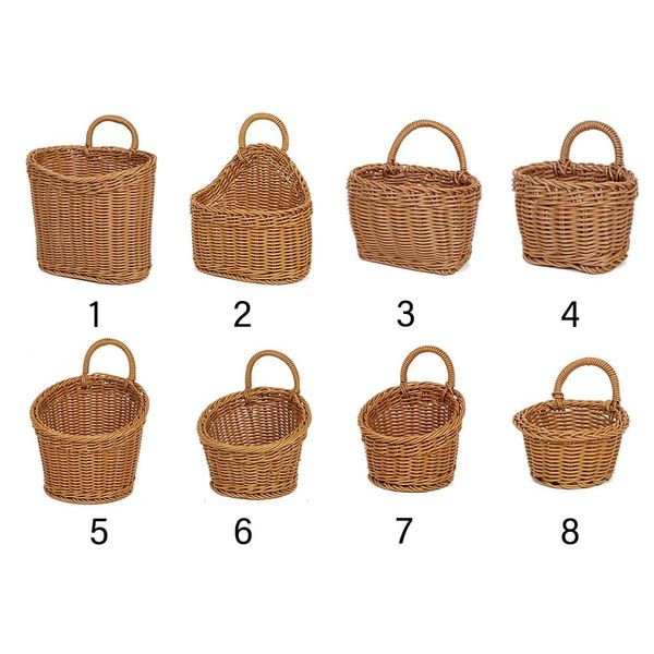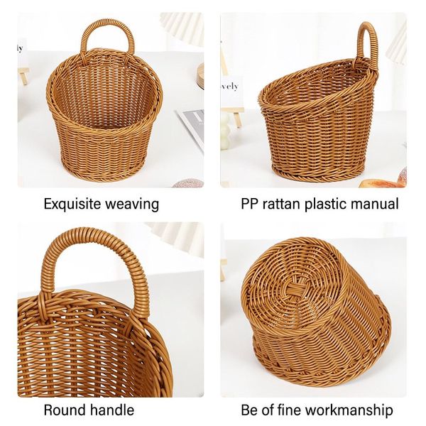 仿藤條廚房收納籃家居裝飾帶手柄手工編織掛籃蔬菜水果花卉棕色