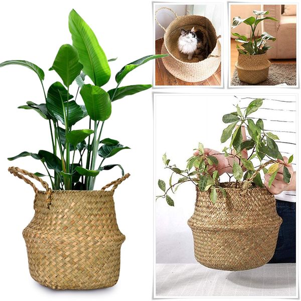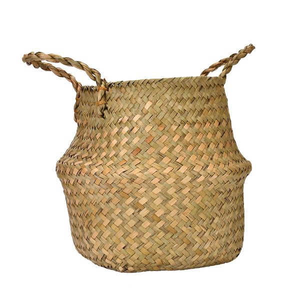 天然海草編織收納盆手提籃,用於存放洗衣野餐花盆蓋和沙灘包