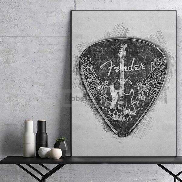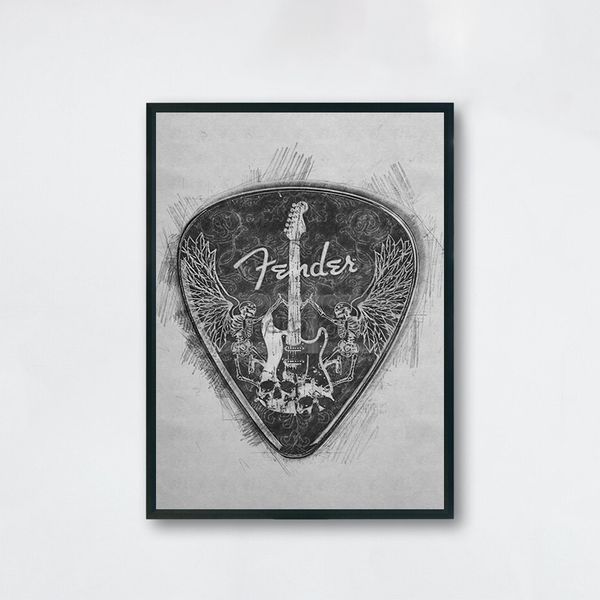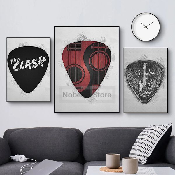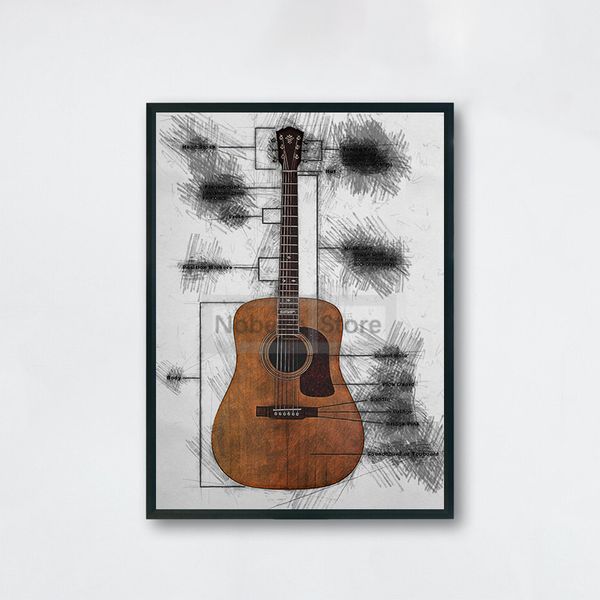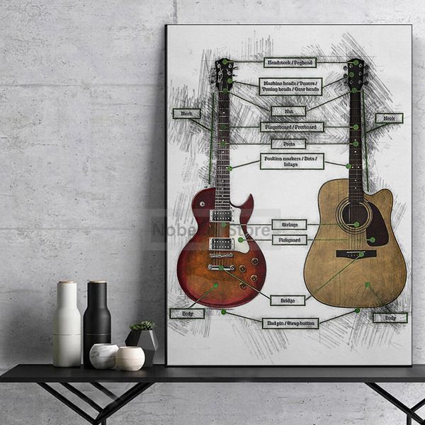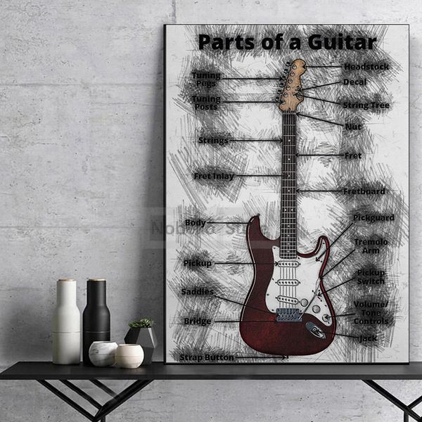 吉他組件示意圖和吉他撥片海報樂器印刷品帆布牆藝術圖片家居裝飾