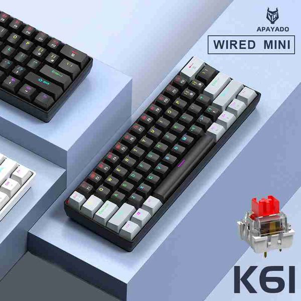 APAYADO K61 60% 迷你有線遊戲機械式鍵盤 Phantom RGB,61 鍵,紅色/藍色開關,符合人體工學,適用於 PC/筆記型電腦