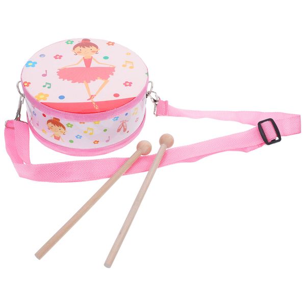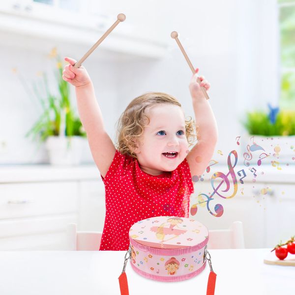 兒童玩具打擊樂木製鼓益智早期教手搖粉紅兒童落地樂器