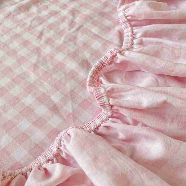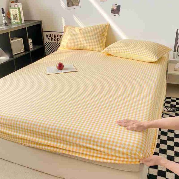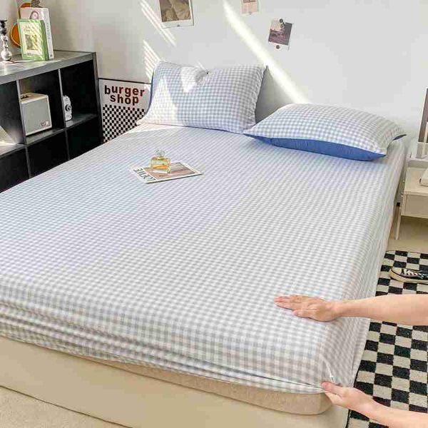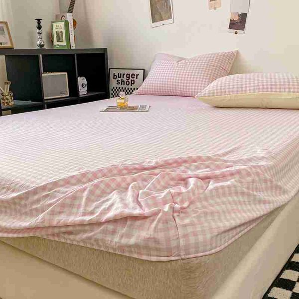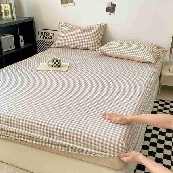 格子風格床單親膚床罩彈性床單適用於女孩男孩房間 couvre lit 家用寢具(No含枕頭套)