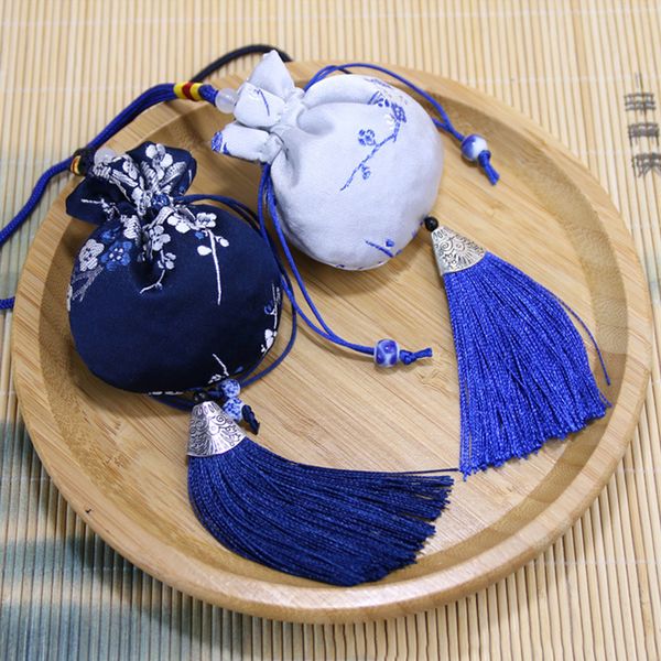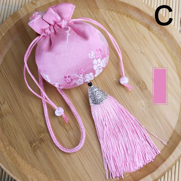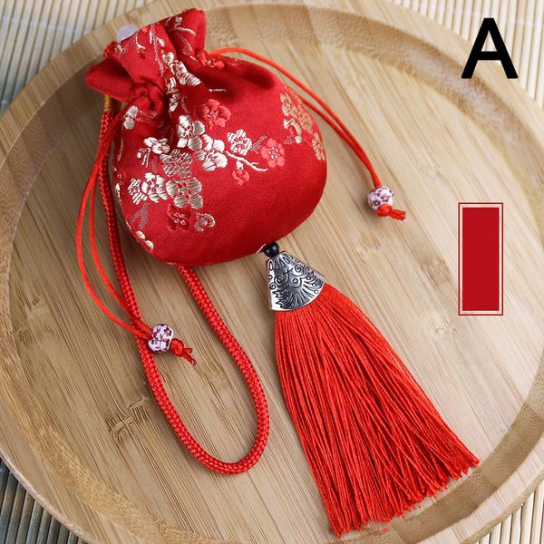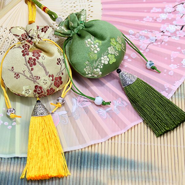 中式刺繡香包仿絲幸運流蘇吊墜空抽繩袋適用於珠寶禮品包裝袋