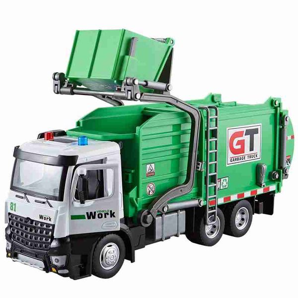 1:24 比例垃圾車玩具模型,合金壓鑄,帶聲光迴力功能,工程運輸車輛,禮品收藏品