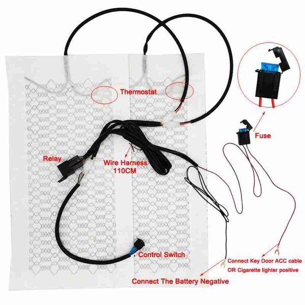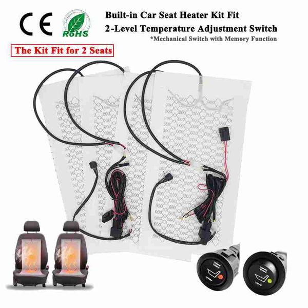 內建汽車座椅加熱器適用於2個座椅12V碳纖維座椅加熱墊高/低溫可調圓形開關控制器