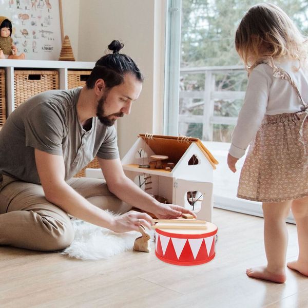 鼓小鼓兒童打擊樂器玩具幼兒樂器兒童手搖行進兒童木製鼓 11 吋套裝嬰兒湯姆落地鼓套件