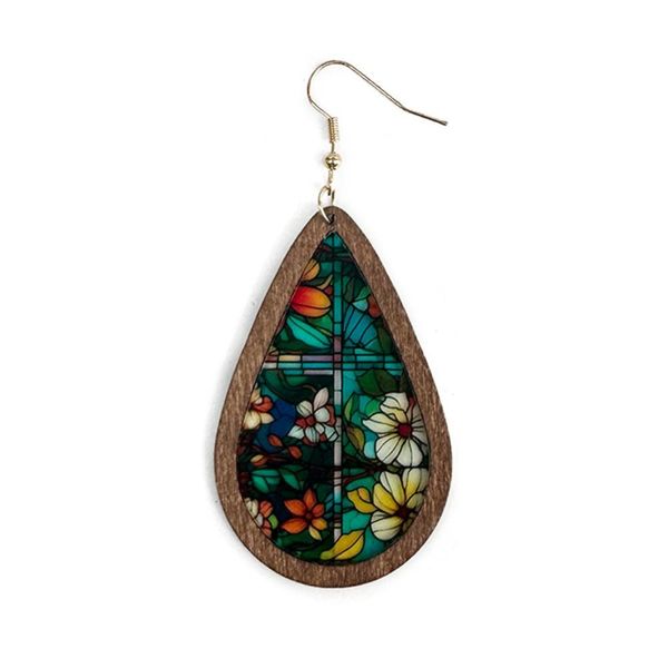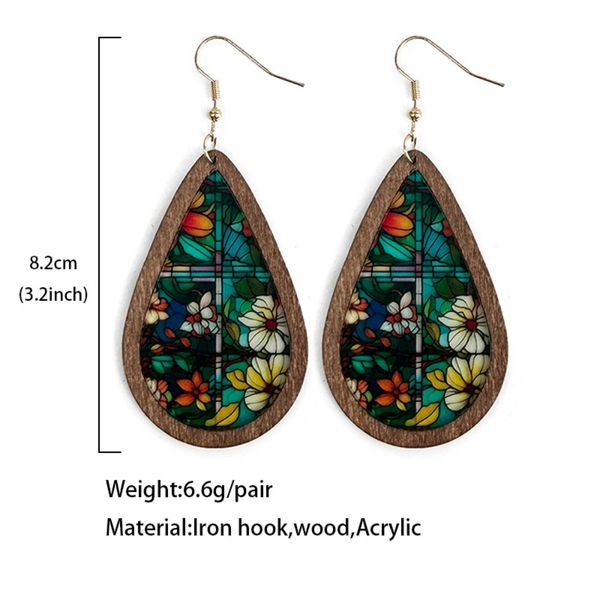 萬花筒圖案馬賽克彩色玻璃耳環明亮復古彩色個性耳環壓克力木水滴耳環