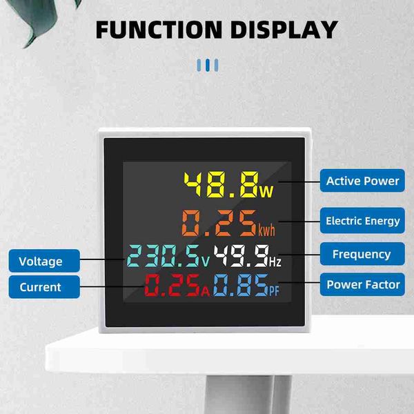 6合1數字顯示電壓表電流表電流電壓頻率電能表交流電監測器100A千W時號誌燈指示器22毫米