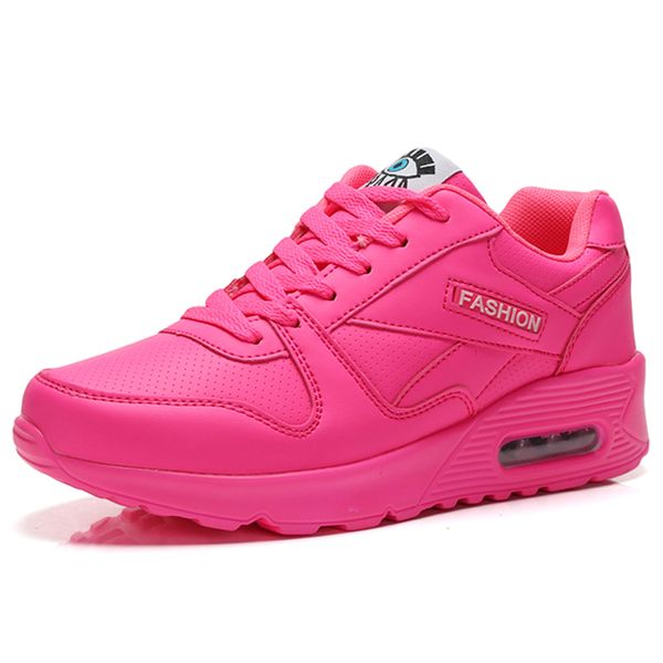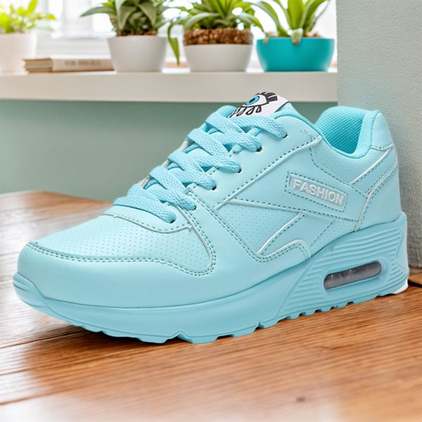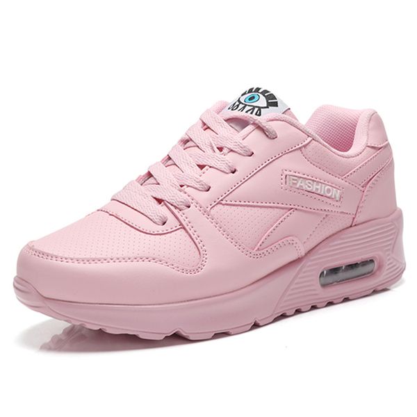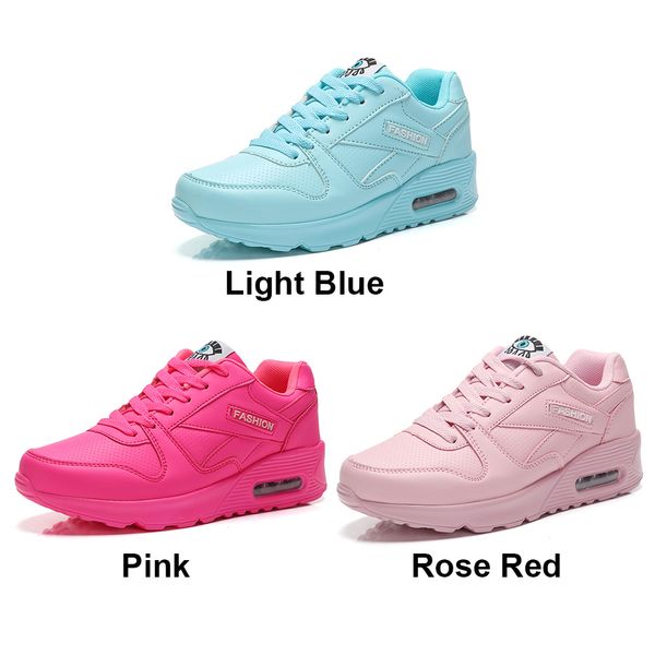 女士氣墊運動鞋 PU 皮革時尚運動鞋 透氣健身運動鞋 女士慢跑鞋