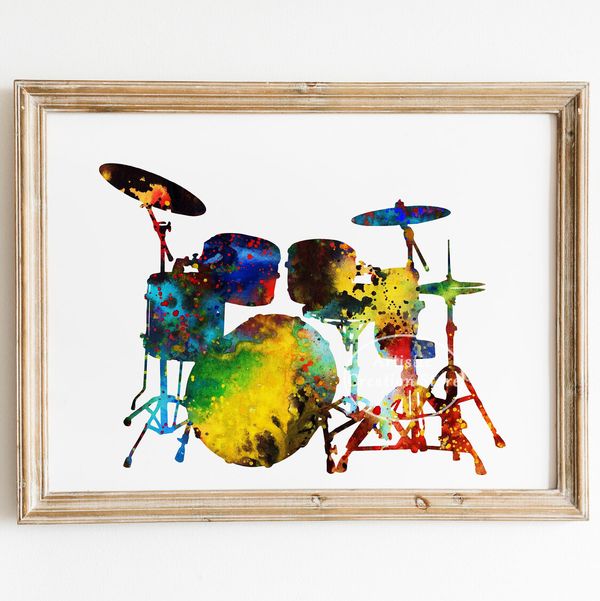 水彩鼓樂器海報風笛凱爾特抽象油畫印刷品客廳工作室牆壁家居裝飾