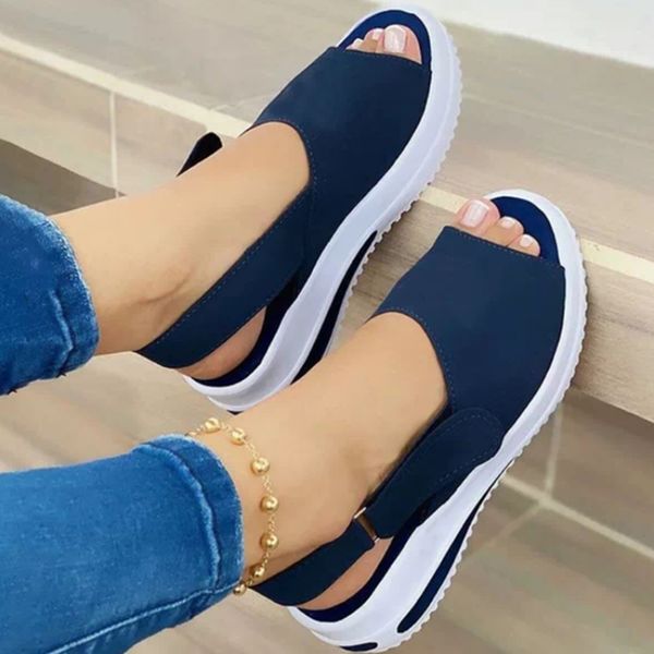 夏季女士涼鞋厚底露趾鞋加大尺碼休閒女士鞋