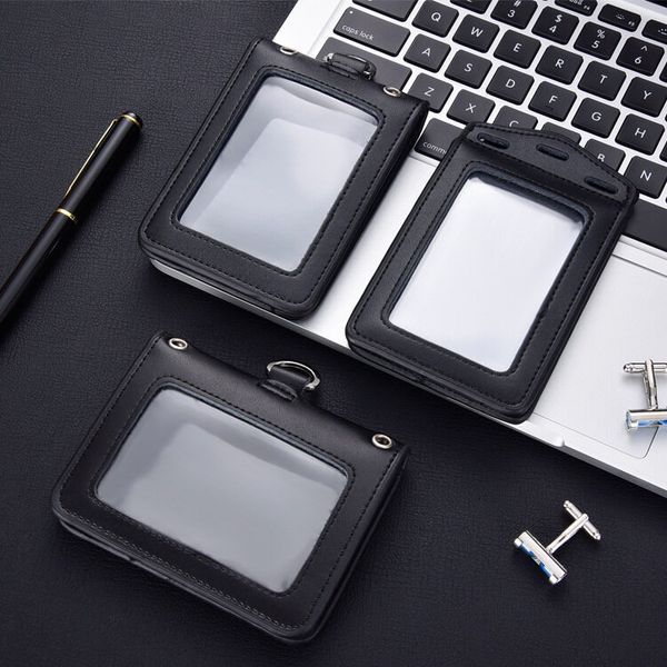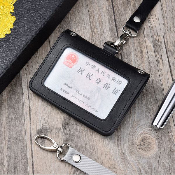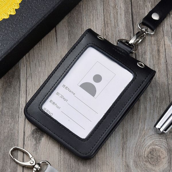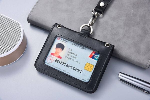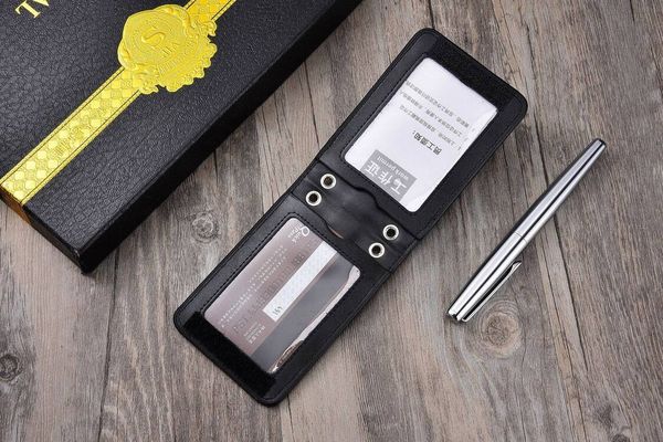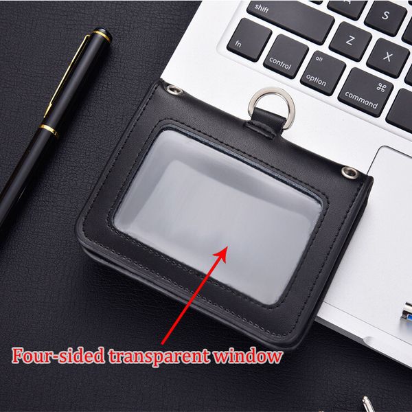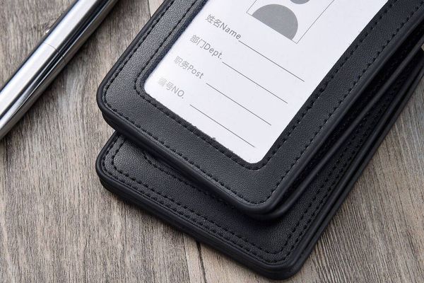 全新四面透明窗口裝飾徽章夾身分證工作卡夾真皮帶綁帶姓名標籤員工徽章